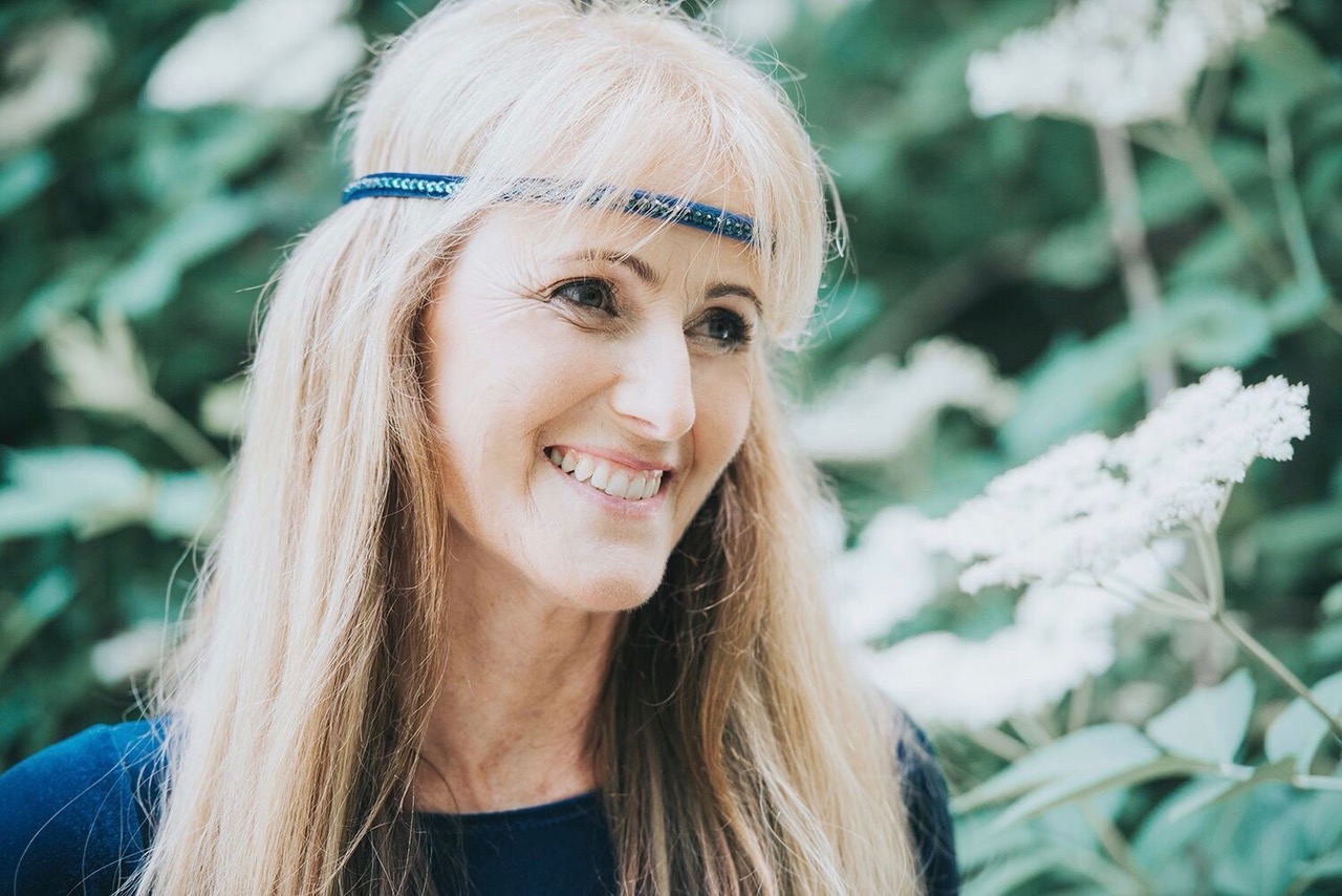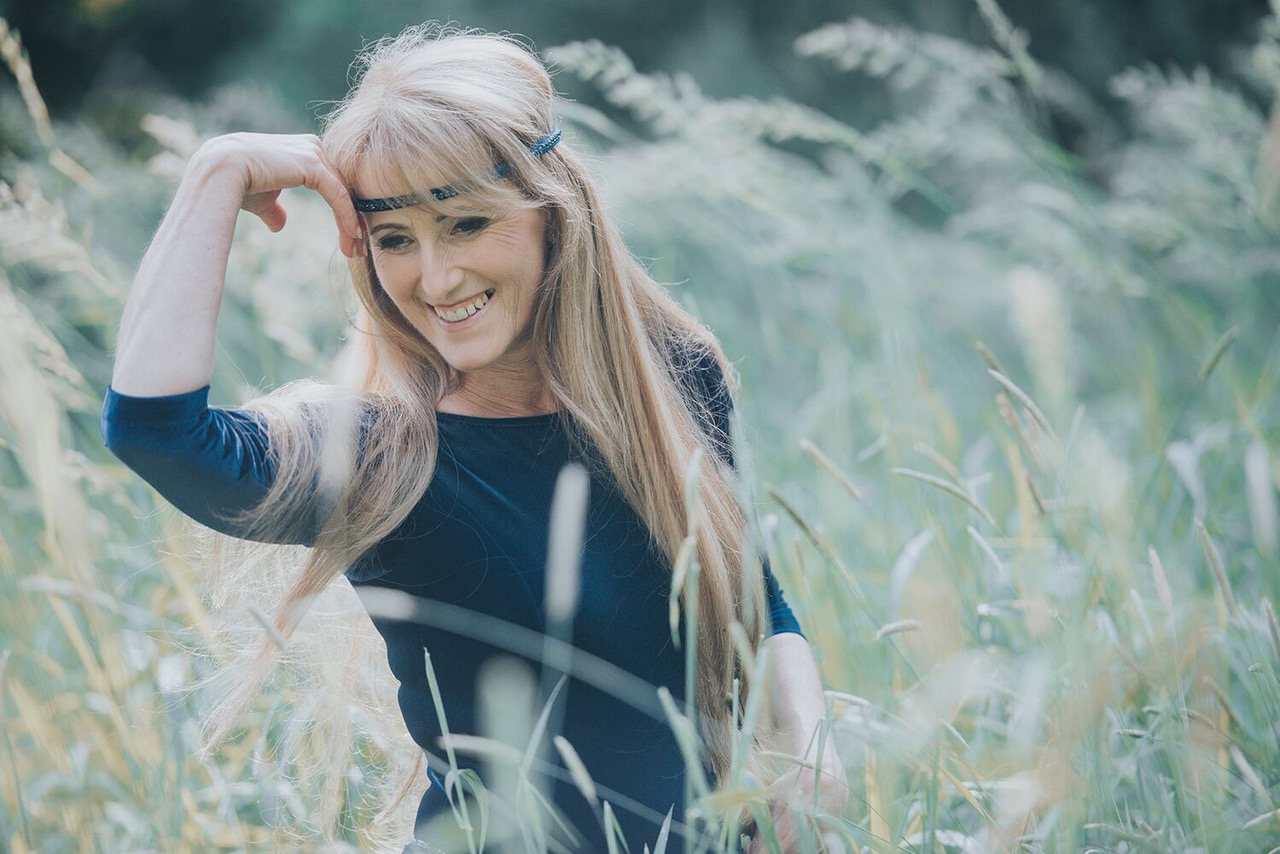 Elvira mit blauem Kleid im Wald